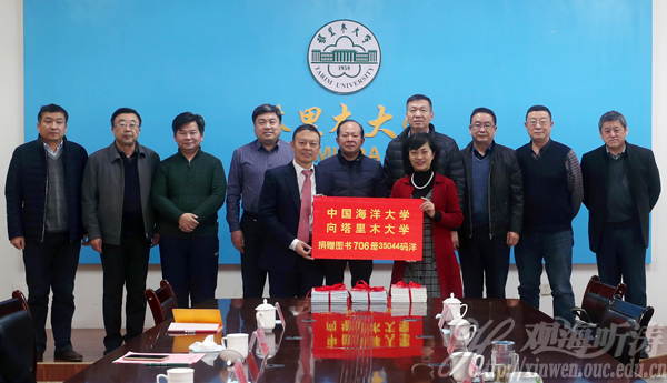 考察期间,廖民生一行代表中国海洋大学向塔里木大学捐赠3万码洋图书,为塔大干部教师举办《新时代中国经济高质量发展的机遇、挑战与应对之策》《以文辅政——谈谈干部的文字写作》主题讲座,与塔大教务处、学报、院(系)分管教学院长(系主任)等干部教师座谈大学教材建设、学报建设和信息技术与教育教学融合。同时,由中国海洋大学牵线搭桥,上海“智慧树”网站决定帮助塔里木大学建设智慧教室,并输送网络课程,帮助其尽快实现从现有60门网课发展到100门网课的建设目标。