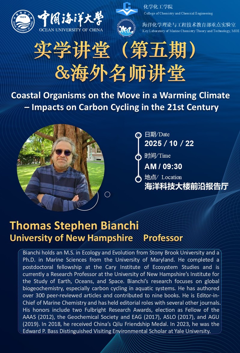 实学讲堂第五期-Thomas Stephen Bianchi教授:Coastal Organisms on the Move in a Warming Climate