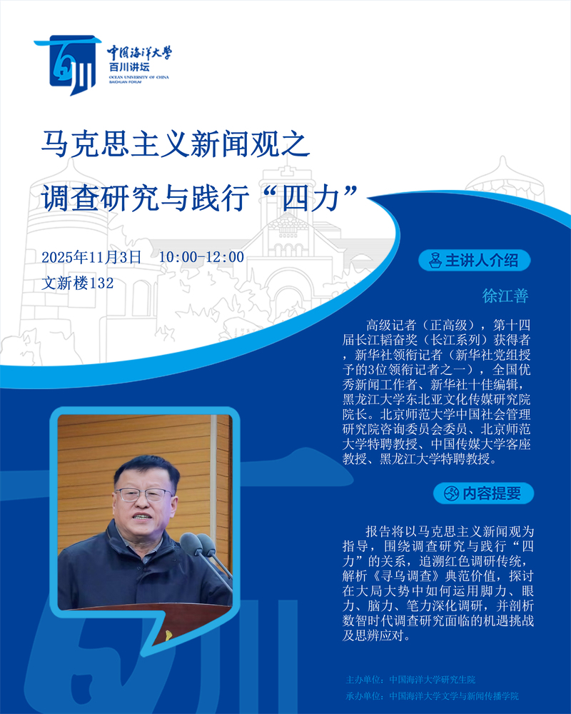 研究生百川讲坛第549讲-徐江善:马克思主义新闻观之调查研究与践行“四力”