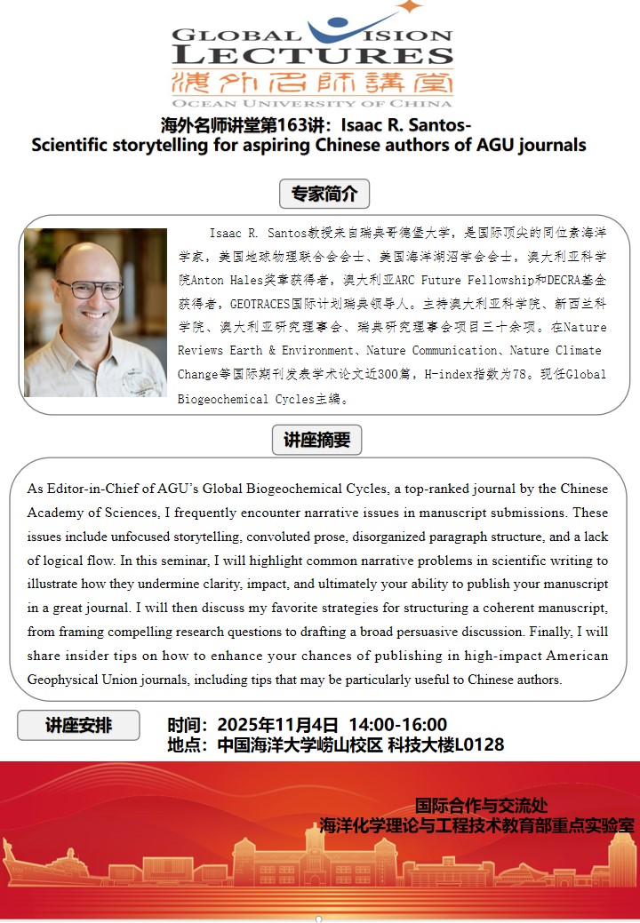 海外名师讲堂第一百六十三讲-Isaac R. Santos:Scientific storytelling for aspiring Chinese authors of AGU journals