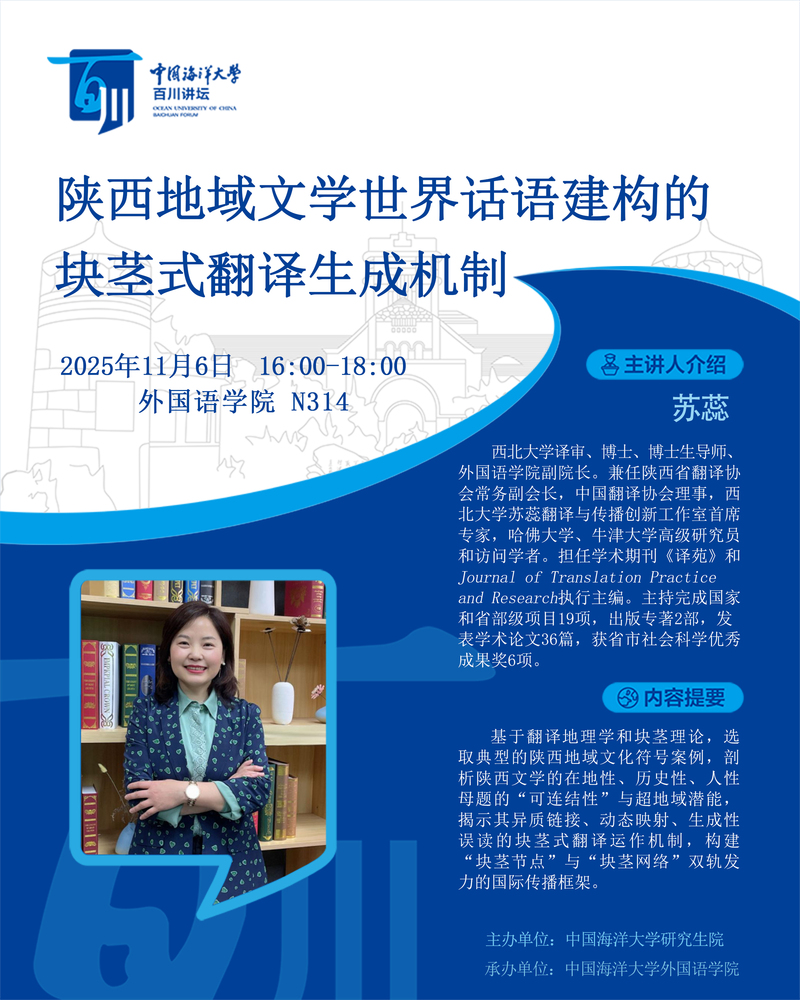 研究生百川讲坛第554讲-苏蕊:陕西地域文学世界话语建构的块茎式翻译生成机制