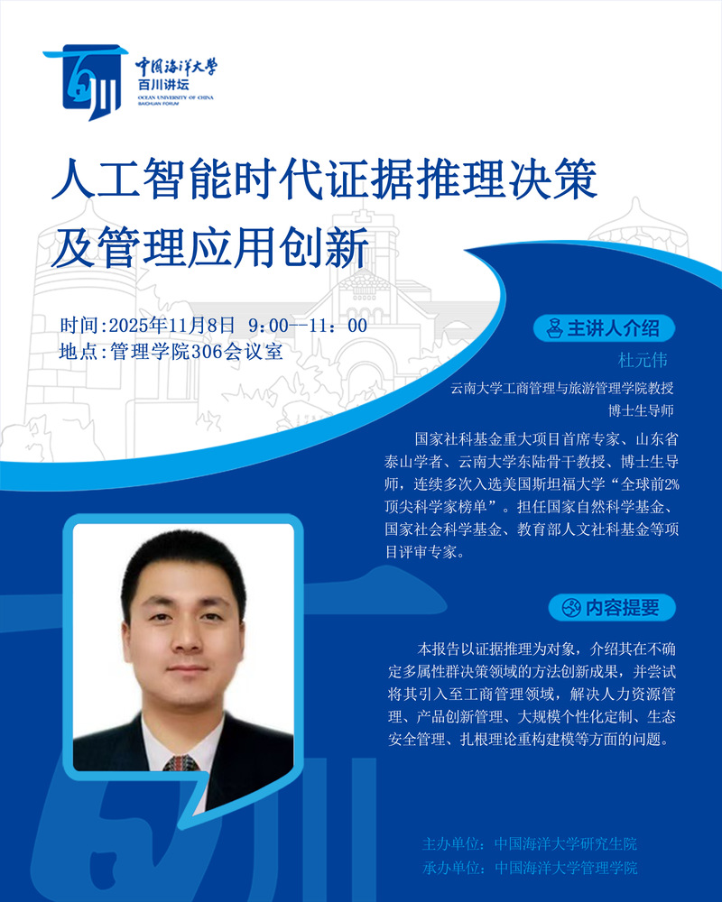 研究生百川讲坛第556讲-杜元伟:人工智能时代证据推理决策及管理应用创新