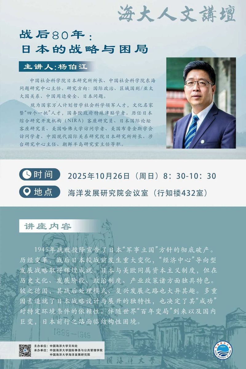 海大人文讲坛2025年第76讲-杨伯江:战后80年:日本的战略与困局