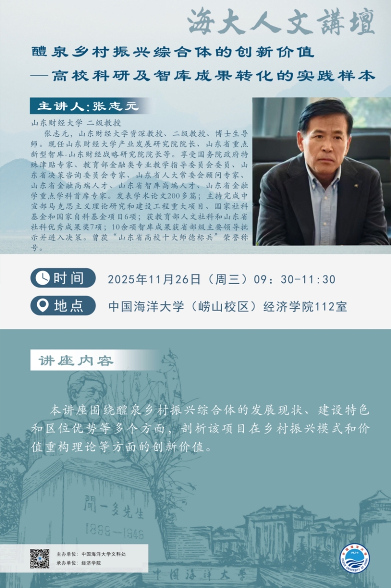 海大人文讲坛2025年第91讲-张志元:醴泉乡村振兴综合体的创新价值——高校科研及智库成果转化的实践样本