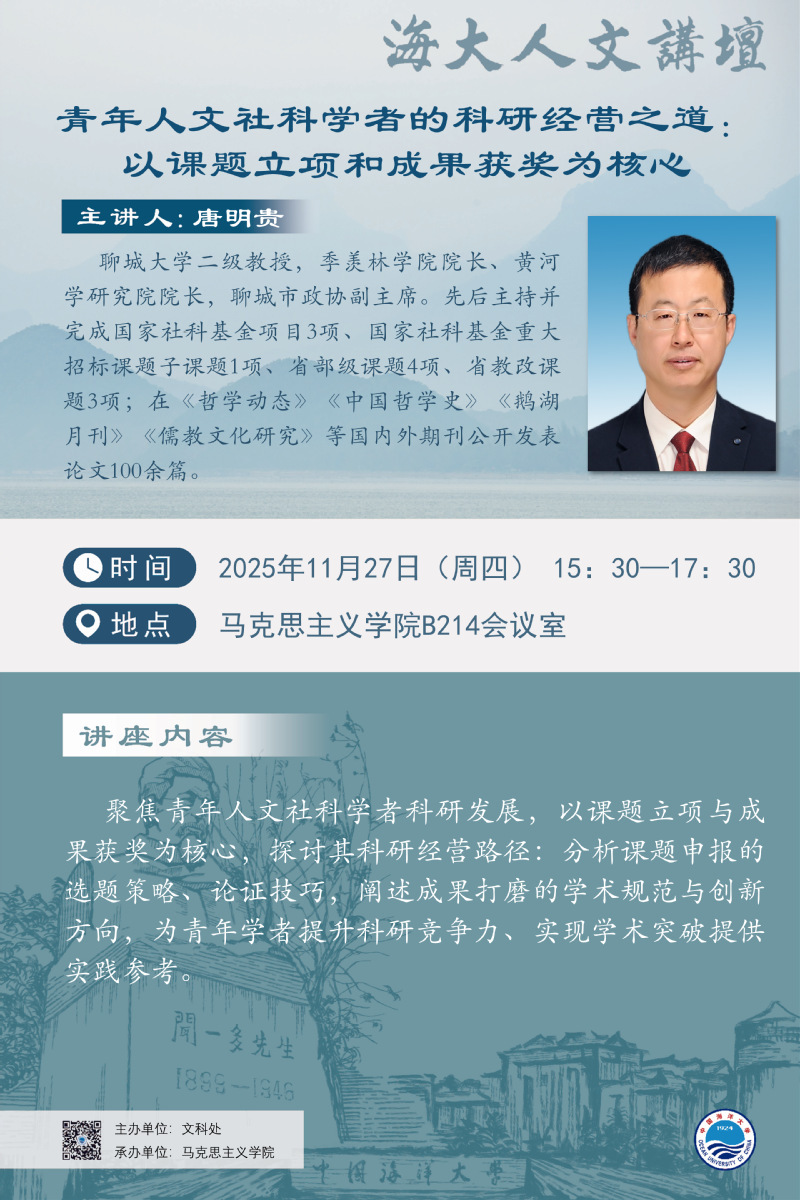 海大人文讲坛2025年第93讲-唐明贵:青年人文社科学者的科研经营之道:以课题立项和成果获奖为核心