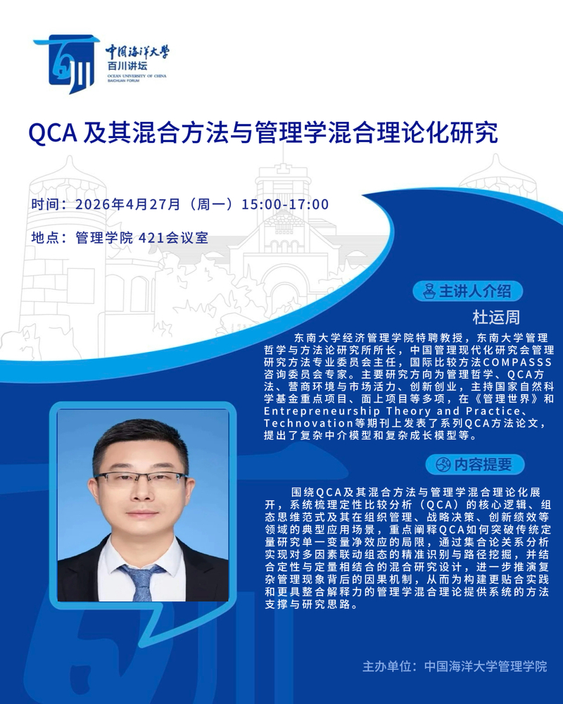 研究生百川讲坛第596讲-杜运周:QCA及其混合方法与管理学混合理论化研究