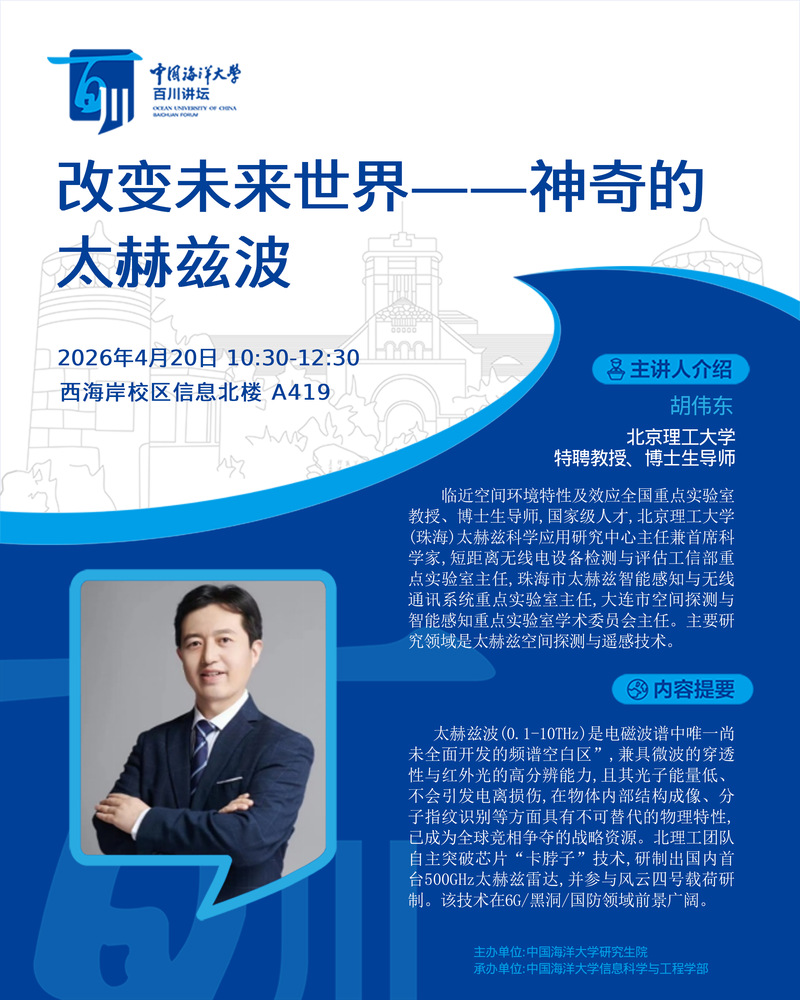 研究生百川讲坛第595讲-胡伟东:改变未来世界——神奇的太赫兹波