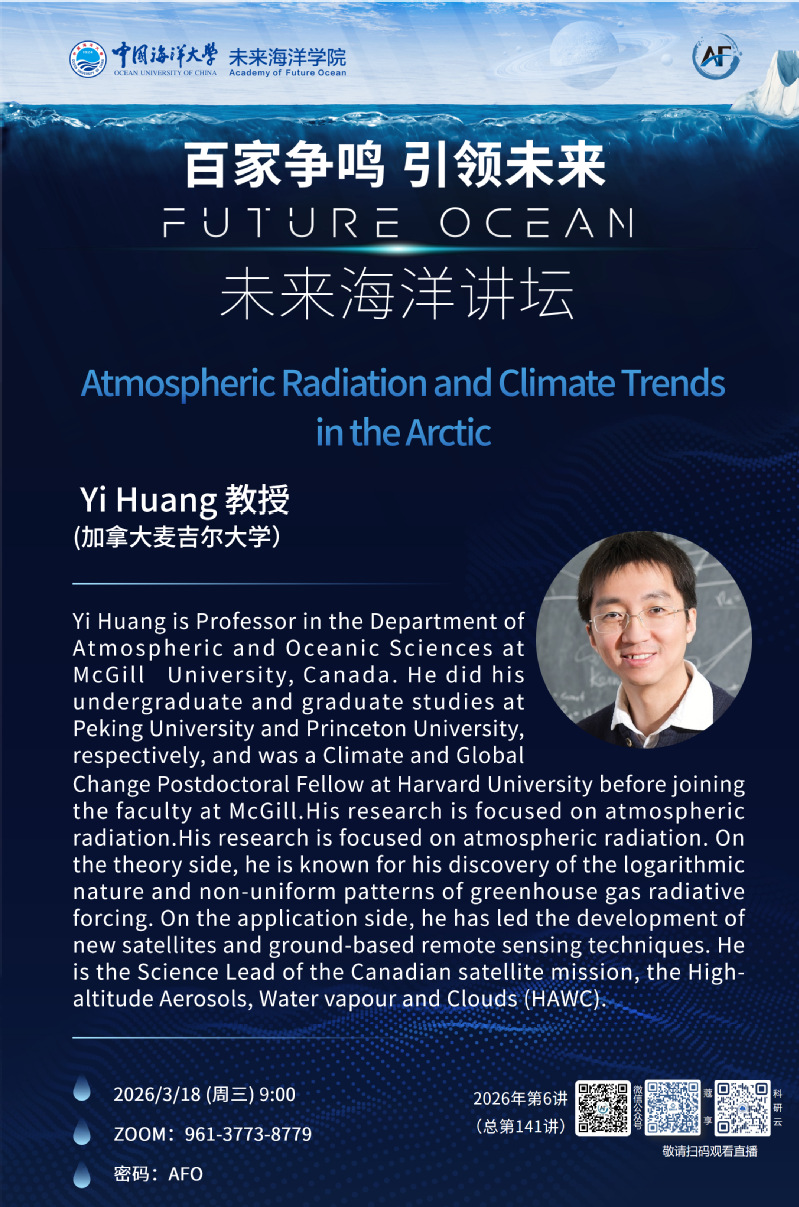未来海洋讲坛第141讲(2026年第6讲)-Yi Huang:Atmospheric Radiation and Climate Trends in the Arctic