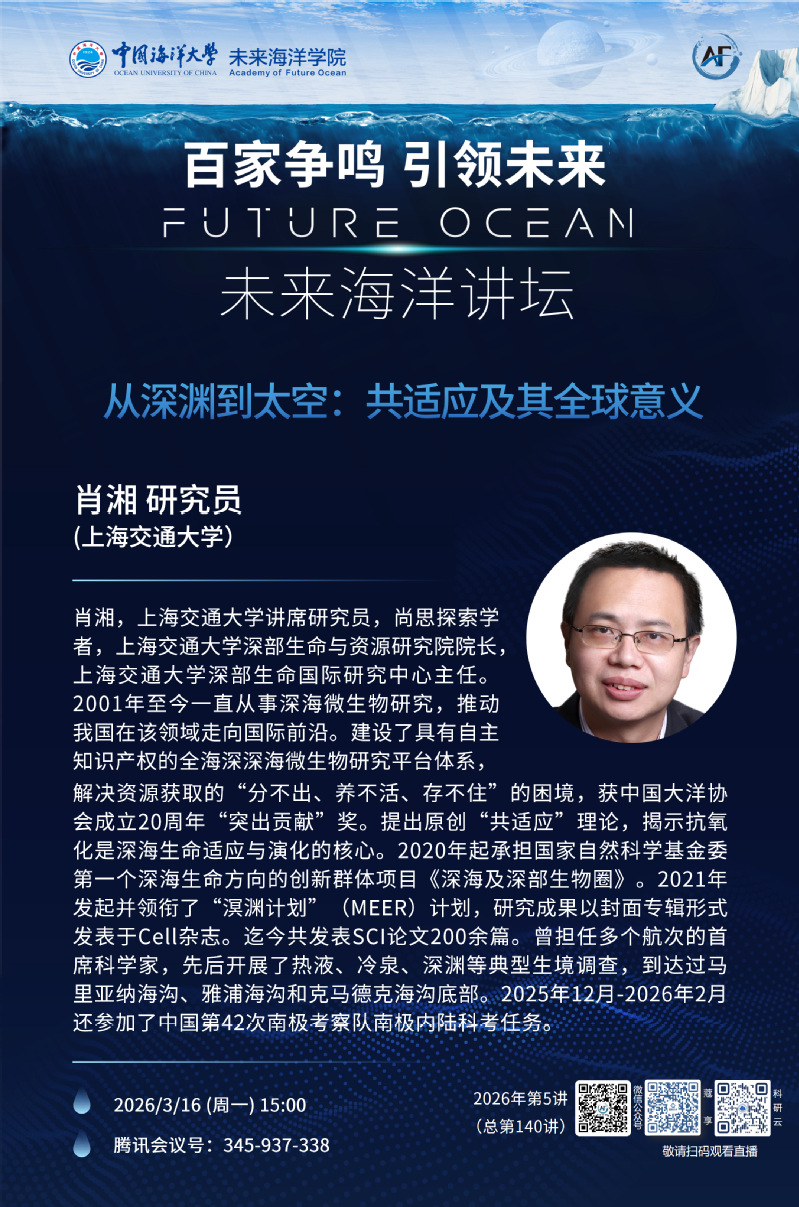未来海洋讲坛第140讲(2026年第5讲)-肖湘:从深渊到太空:共适应及其全球意义