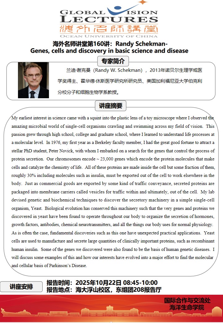 海外名师讲堂第一百六十讲-Randy Schekman:Genes, cells and discovery in basic science and disease