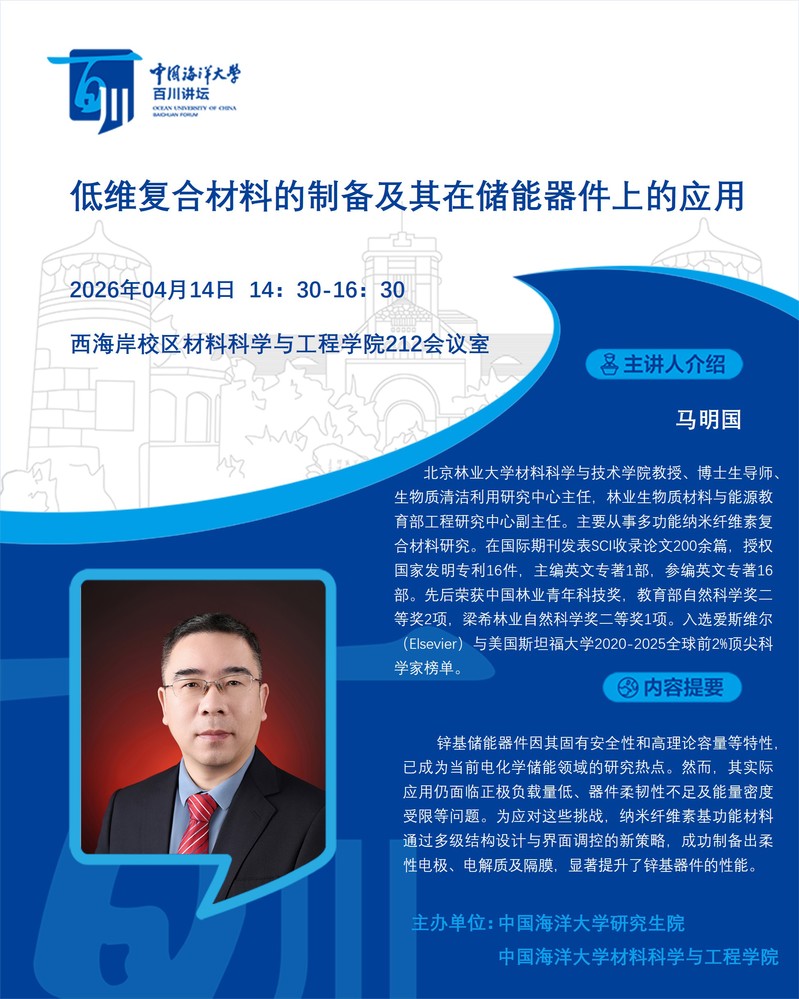 研究生百川讲坛第592讲-马明国:低维复合材料的制备及其在储能器件上的应用