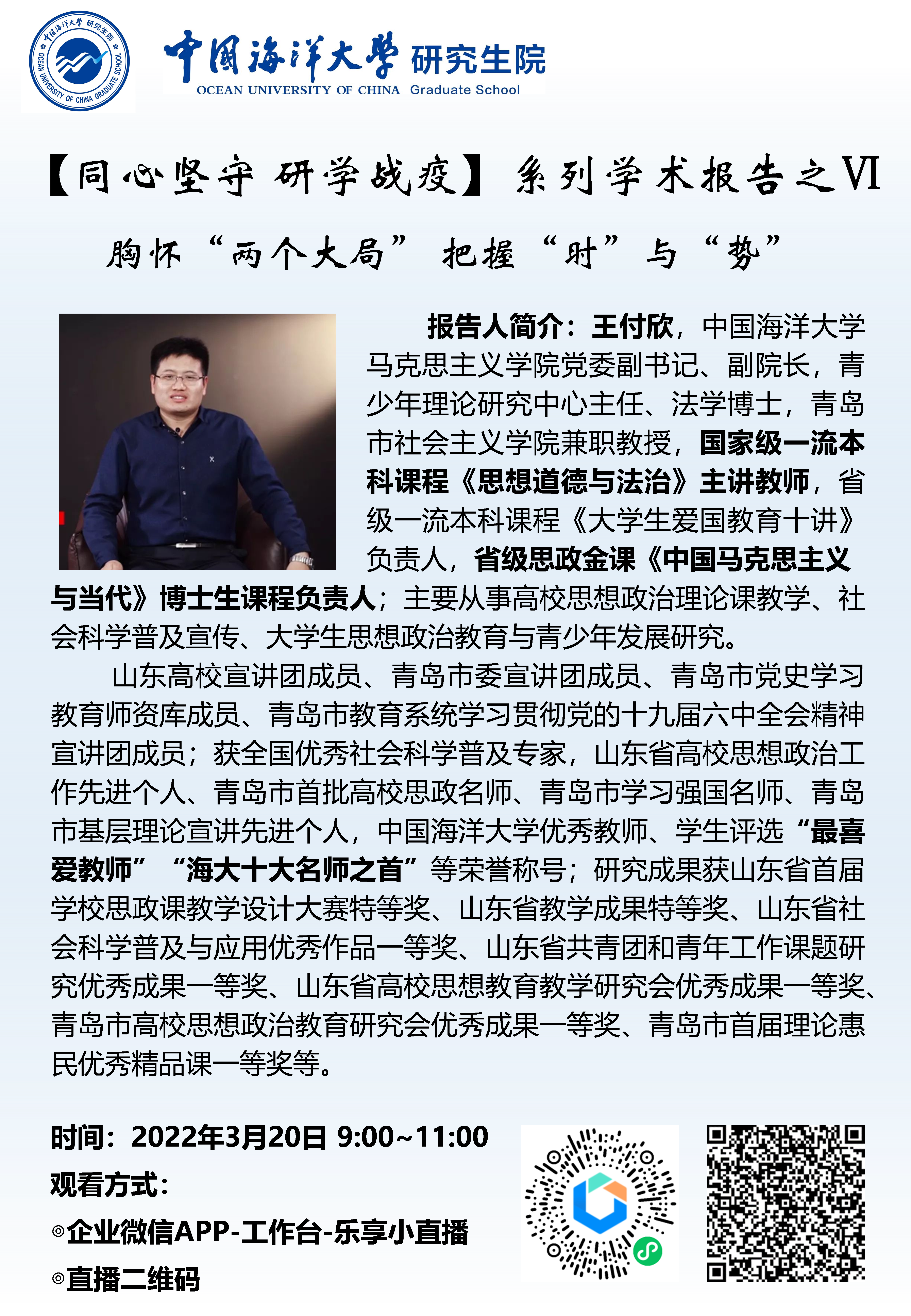 【同心坚守 研学战疫】系列学术报告之Ⅵ-王付欣:胸怀“两个大局” 把握“时”与“势”