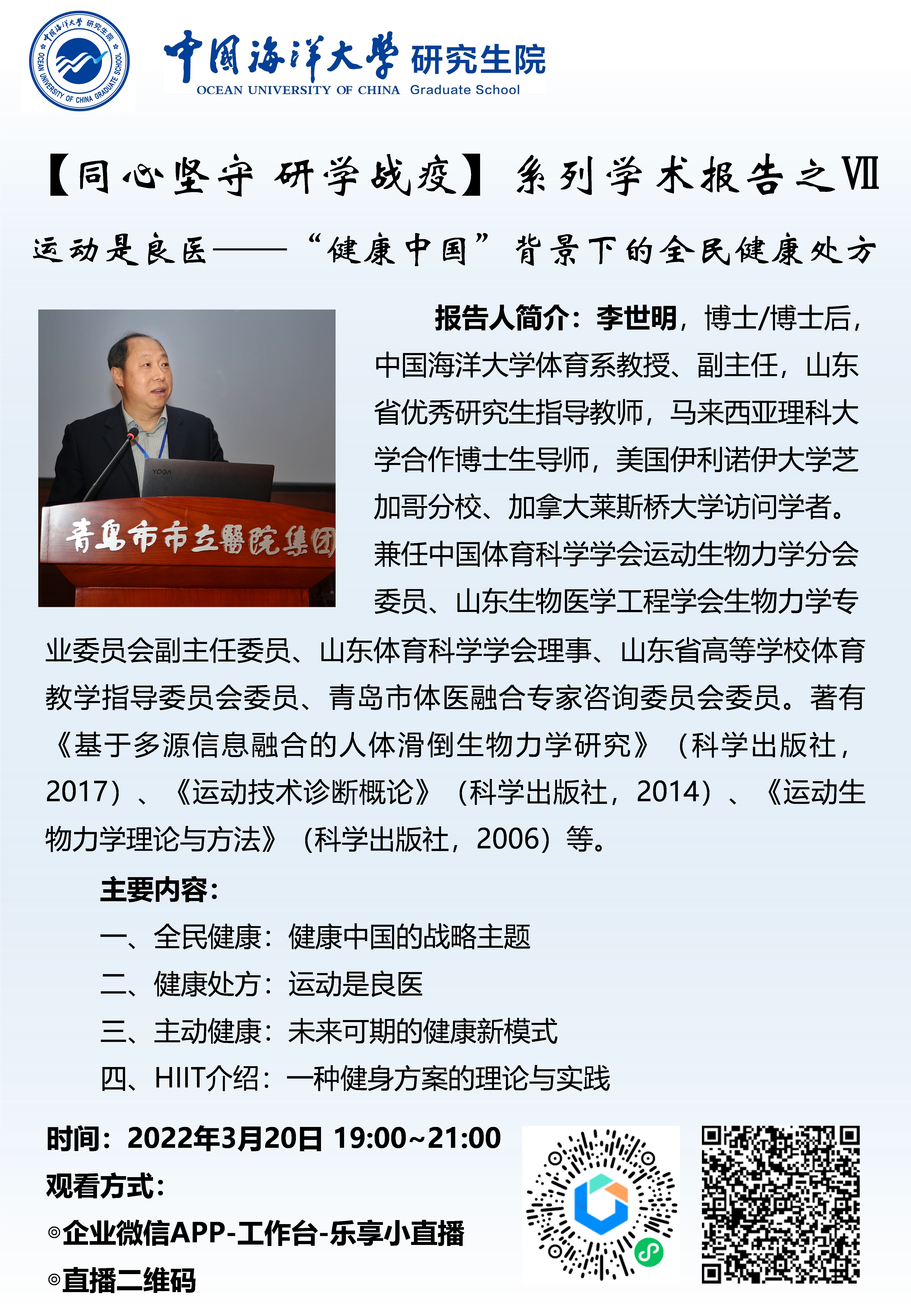 【同心坚守 研学战疫】系列学术报告之Ⅶ-李世明:运动是良医—“健康中国”背景下的全民健康处方