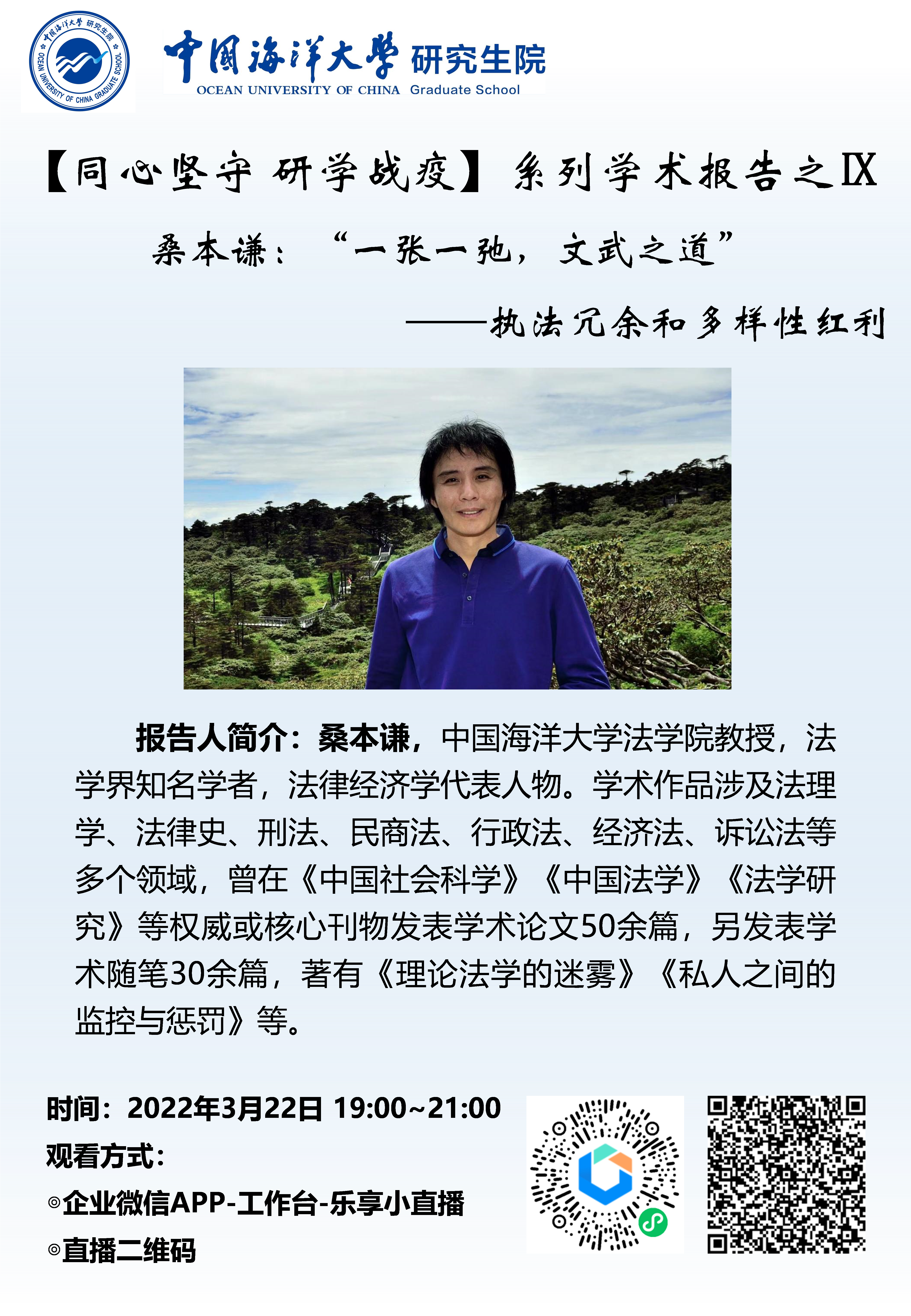 【同心坚守 研学战疫】系列学术报告之Ⅸ-桑本谦:“一张一弛,文武之道”——执法冗余和多样性红利