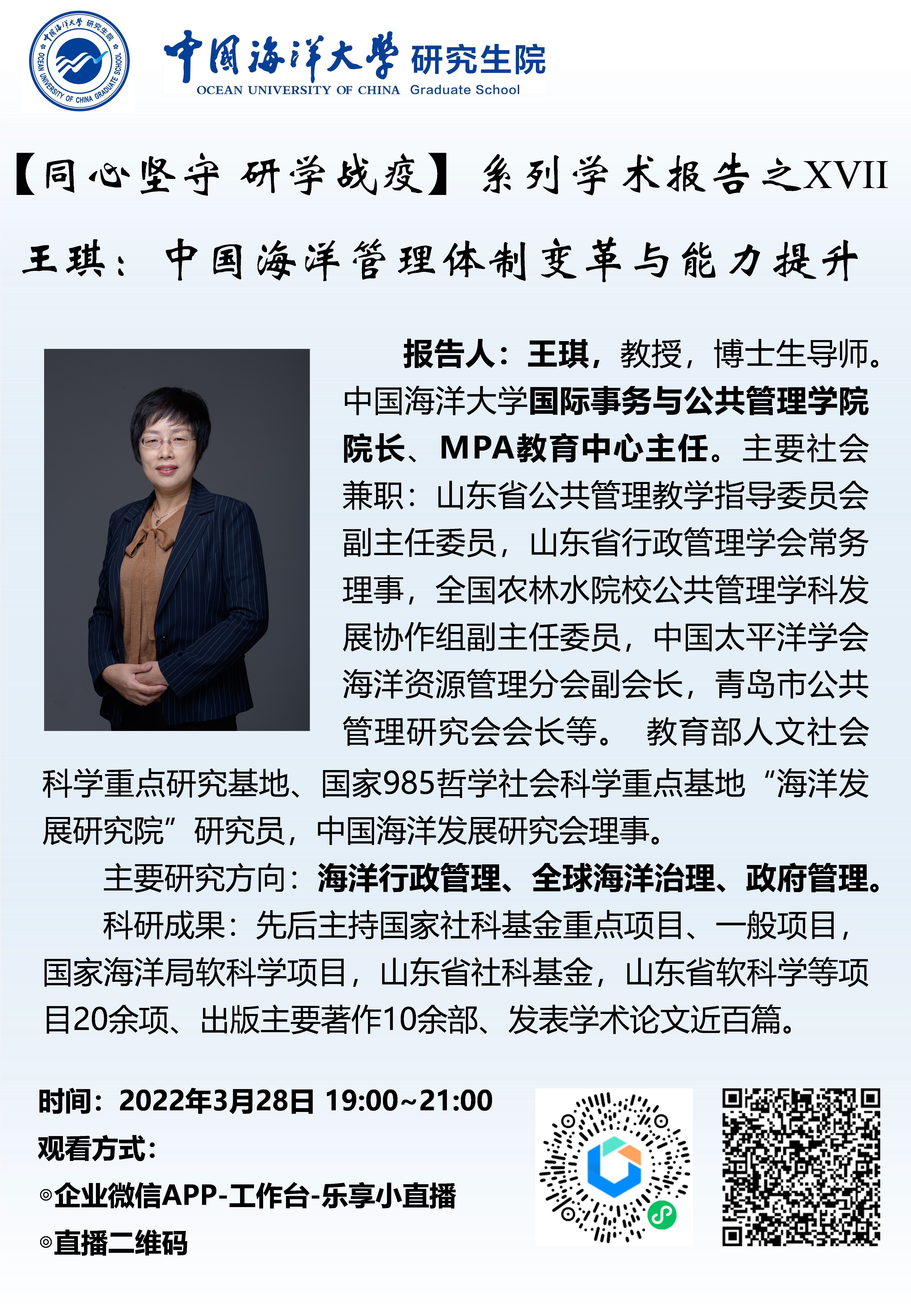 【同心坚守 研学战疫】系列学术报告之XVII-王琪:中国海洋管理体制变革与能力提升