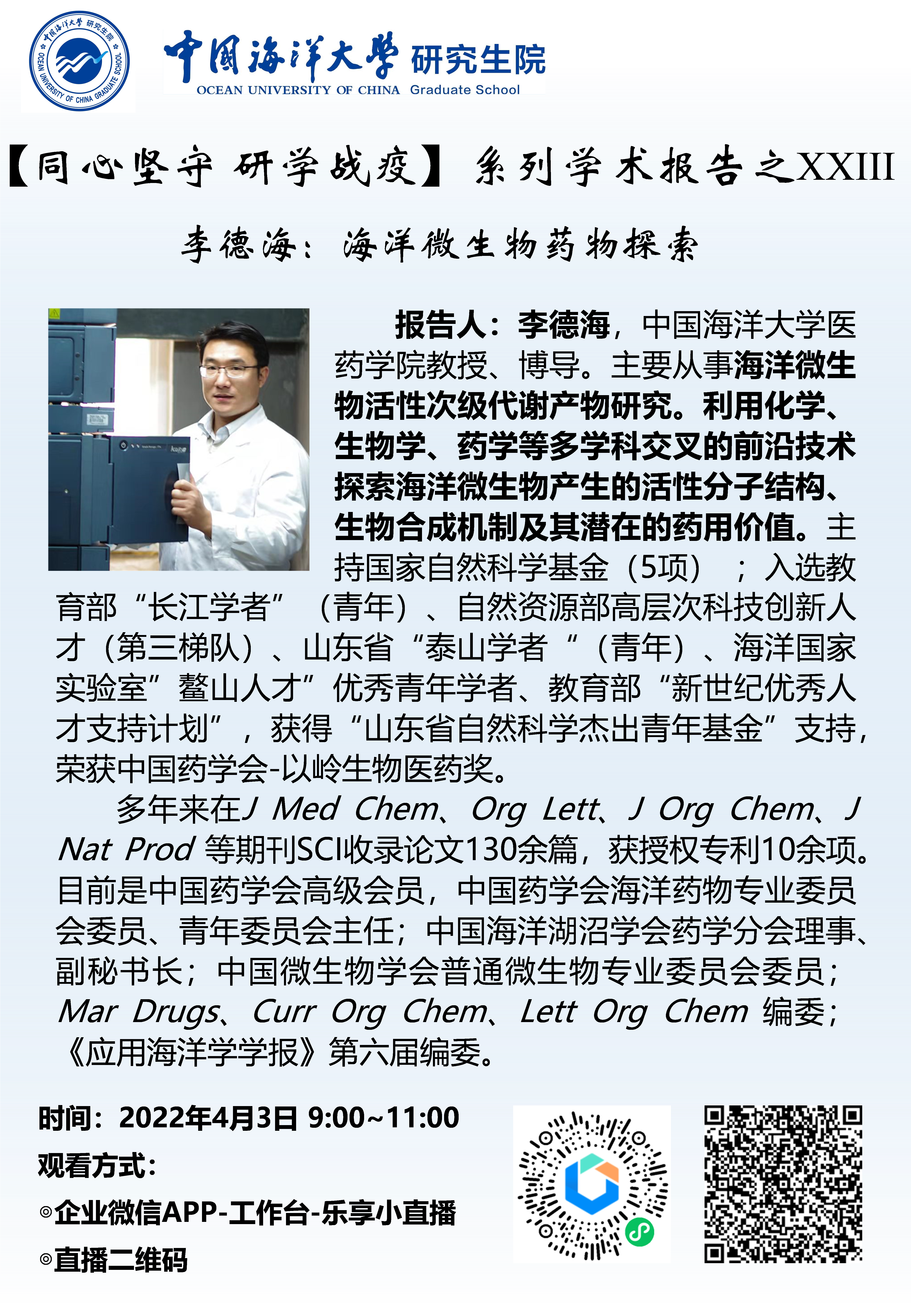 【同心坚守 研学战疫】系列学术报告之XXIII-李德海:海洋微生物药物探索