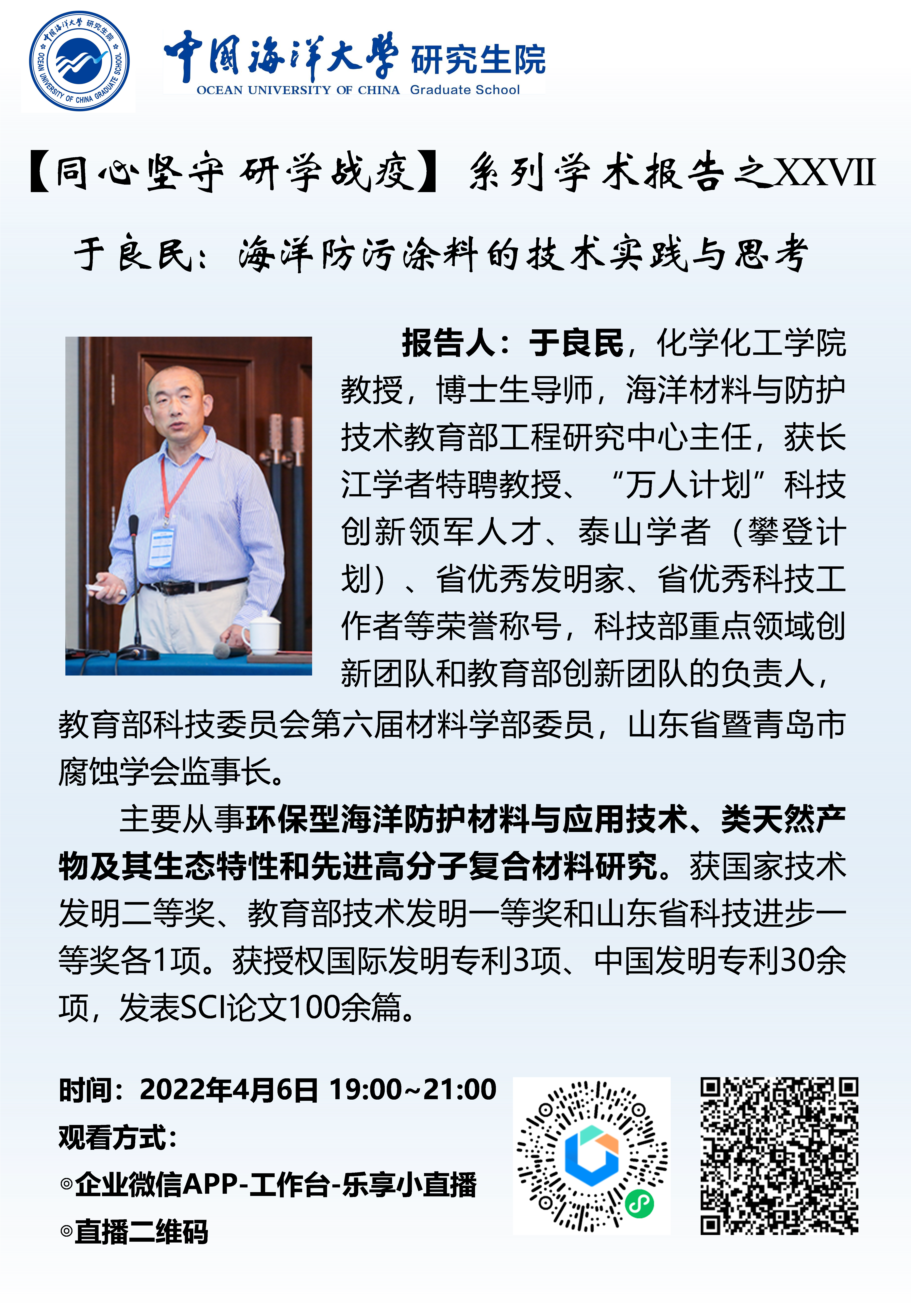 【同心坚守 研学战疫】系列学术报告之XXVII-于良民:海洋防污涂料的技术实践与思考