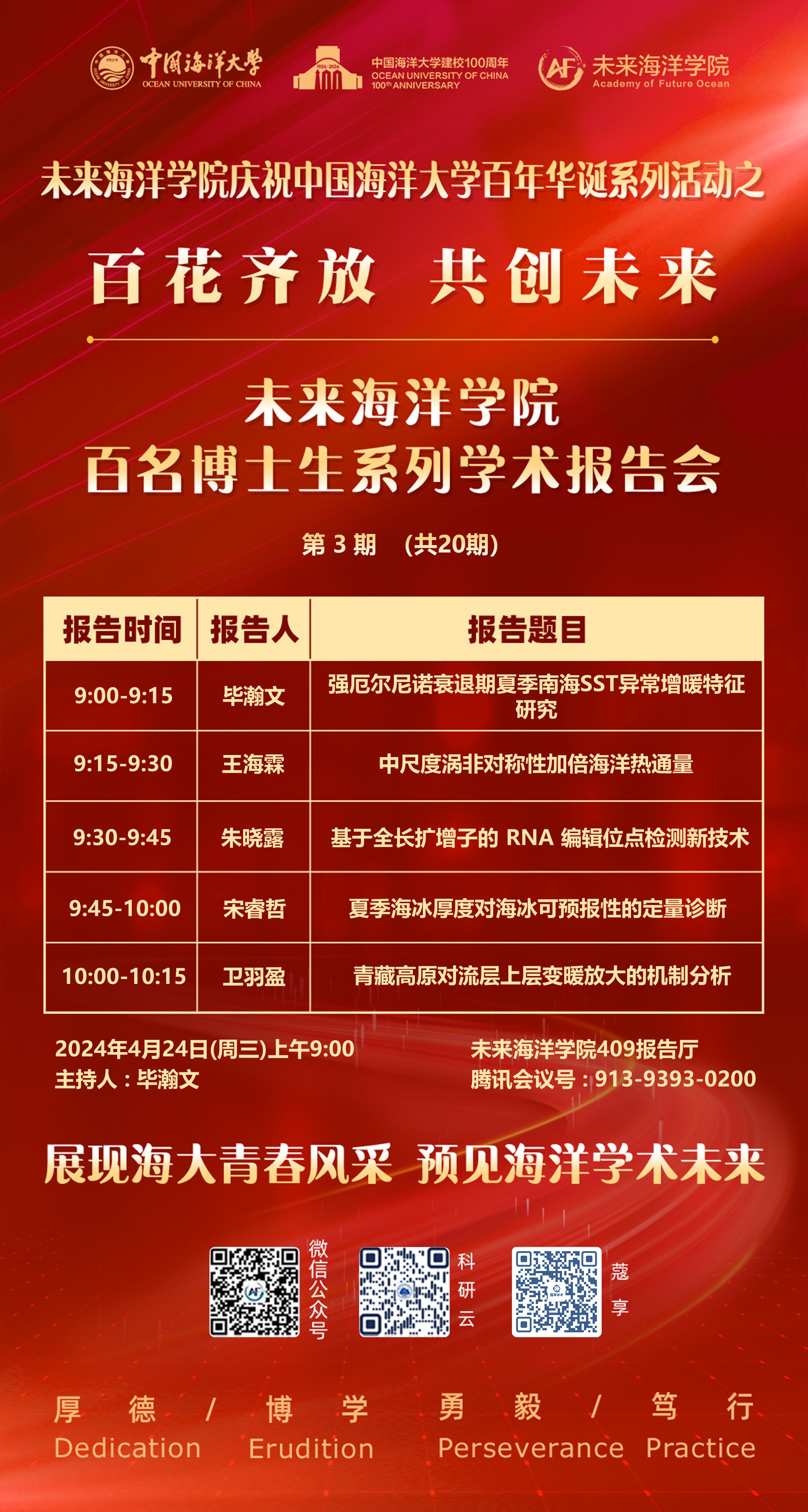 百花齐放 共创未来丨未来海洋学院庆祝中国海洋大学百年华诞系列活动之“百名博士生系列学术报告会”第3期(共20期)