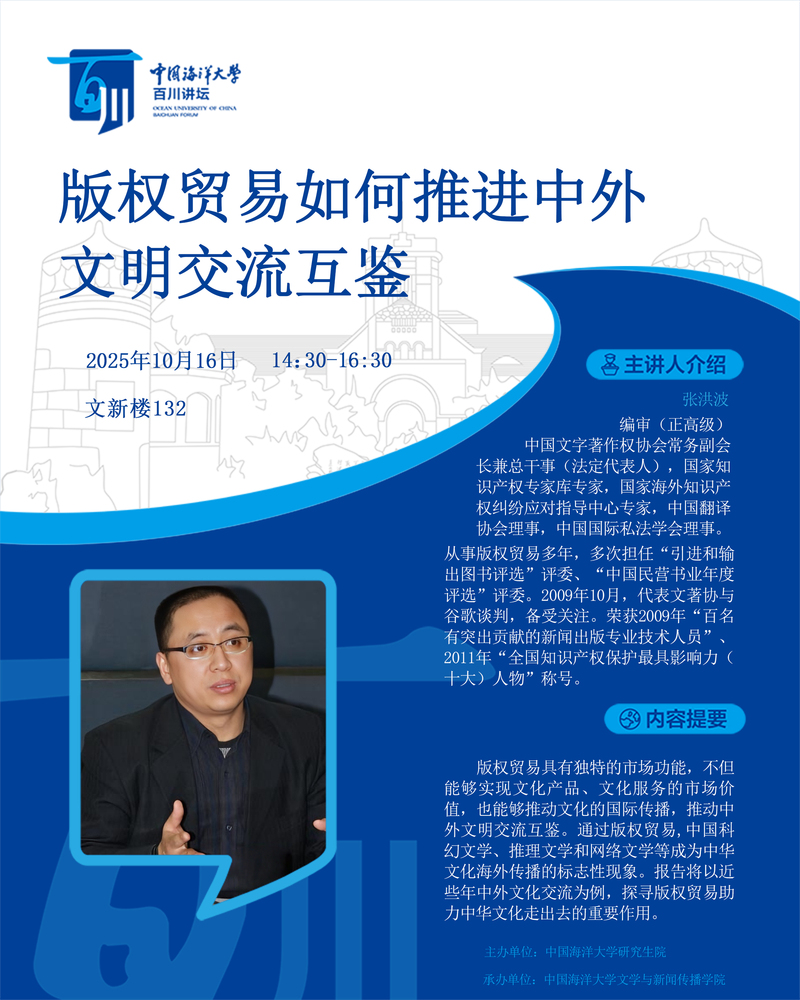 研究生百川讲坛第532讲-张洪波:版权贸易如何推进中外文明交流互鉴