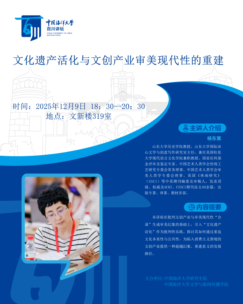 研究生百川讲坛第579讲-杨东篱:文化遗产活化与文创产业审美现代性的重建