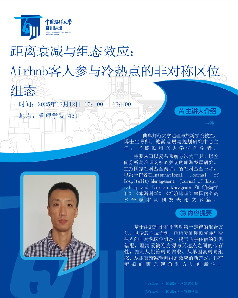 研究生百川讲坛第582讲-王铁:距离衰减与组态效应:Airbnb客人参与冷热点的非对称区位组态
