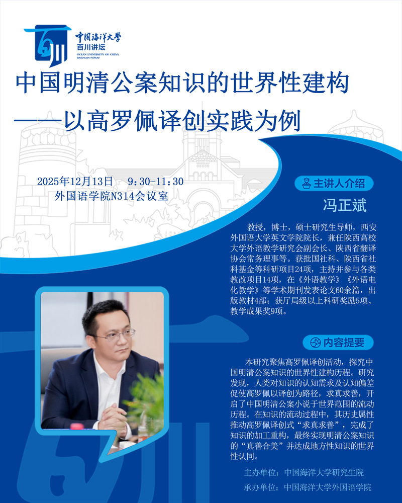 研究生百川讲坛第585讲-冯正斌:中国明清公案知识的世界性建构——以高罗佩译创实践为例