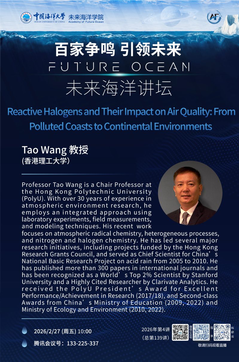 未来海洋讲坛第139讲(2026年第4讲)-Tao Wang:Reactive Halogens and Their Impact on Air Quality:From Polluted Coasts to Continental Environments