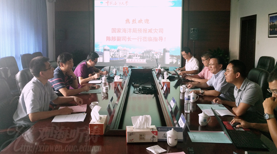 国家海洋局预报减灾司副司长陈陟一行到中国海洋大学调研