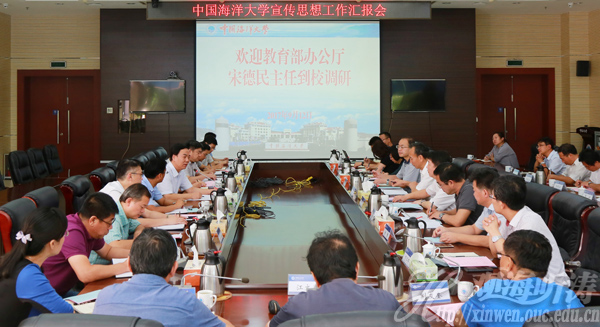 本站讯 9月12日下午,教育部办公厅主任宋德民到中国海洋大学调研。校党委书记鞠传进主持会议。党委