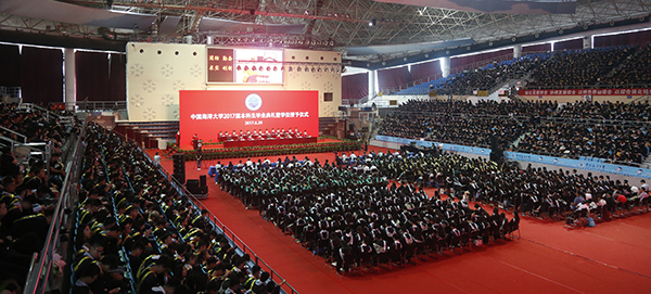 本站讯 6月29日下午,中国海洋大学2017届本科生毕业典礼暨学位授予仪式在崂山校区综合体育馆举