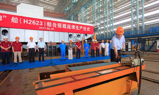 于志刚校长为“东方红3”船船台搭载连续生产仪式点火 本站讯 6月26日上午