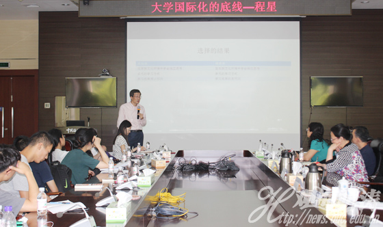 程星协理副校长作报告(丁红丽 摄) 本站讯 6月27日上午,香港城市大学协理副校长程星一行来到中国