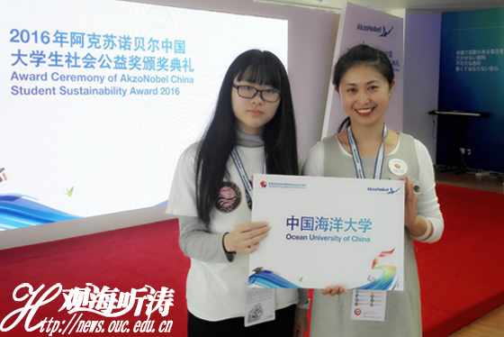 中国海洋大学学生社团荣获第五届阿克苏诺贝尔中国大学生社会公益奖