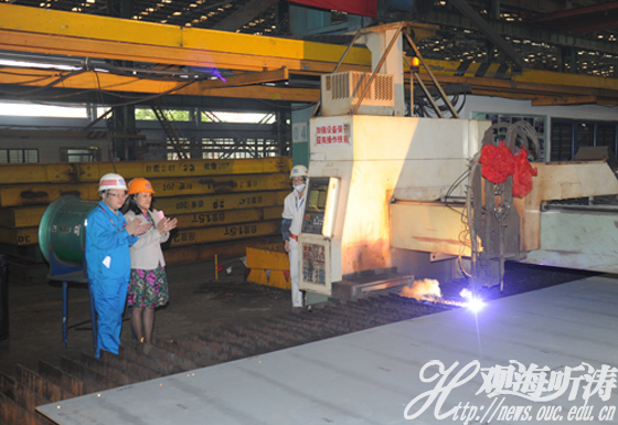 胡可一总工和闫菊副校长(右)为启动仪式点火 本站讯 2016年10月25日上午,中国海洋大学新型深