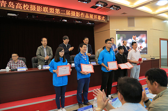 与会领导向获奖摄影作品作者代表颁奖 本站讯 5月29日—6月4日,2016青岛高校摄影
