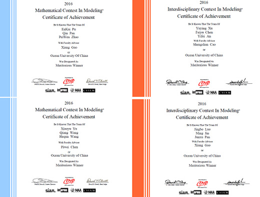 中国海大学子在2016年美国大学生数学建模竞赛中获佳绩