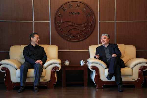 青岛蓝色硅谷核心区管委主任、即墨市市长张军一行到中国海洋大学商讨合作事宜