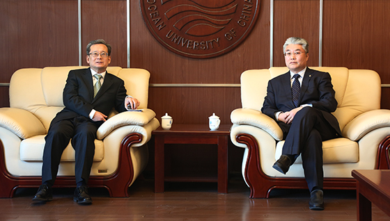 于志刚校长(右)会见郭樑常务副院长 本站讯 2月2日,中国海洋大