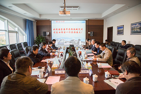 国家海洋局预报减灾司司长曲探宙一行到中国海洋大学调研