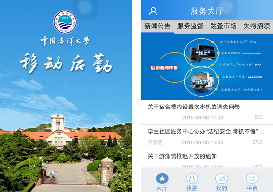 中国海洋大学“移动后勤”APP上线试运行