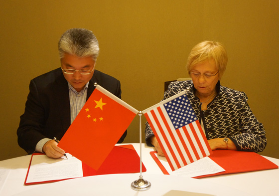 于志刚校长(左)与Susan Avery所长签署国际联合实验室管理办法 &nb