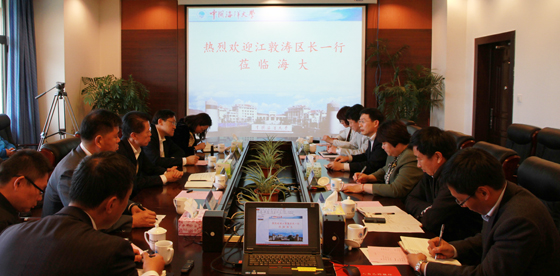 崂山区委副书记、代理区长江敦涛一行来中国海洋大学调研