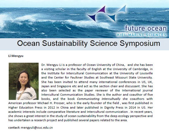 海洋科学可持续发展国际学术研讨会在德国召开 海大教授作主旨演讲