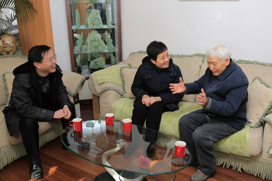 高晓兵部长(中)看望文圣常院士 本站讯 2月8日,在