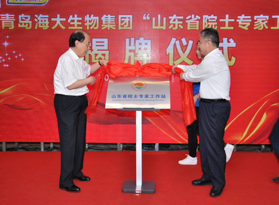于志刚校长(右)与管华诗院士(左)共同为海大生物院士专家工作站揭牌