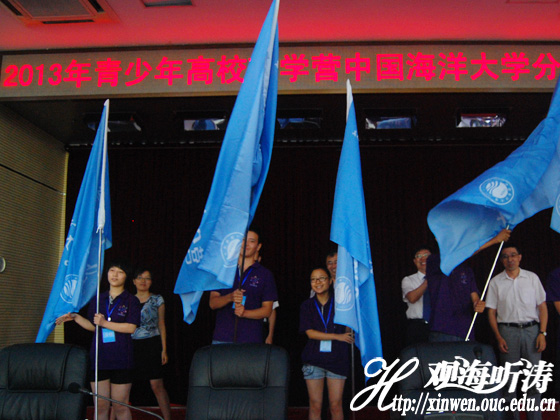 授旗仪式 本站讯 8月6日上午,2013年青少年高校科学营中国海