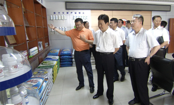 李群书记(前排中)在于志刚书记(前排右)的陪同下参观海大生物技术中心实验室 &