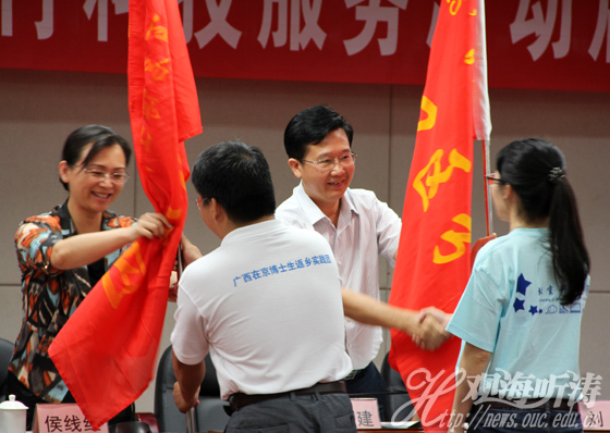 防城港市相关领导向博士团领队授旗 本站讯 7月9号上午,以&ld