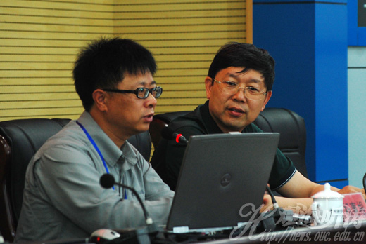杨惠根主任(左)作报告 本站讯 6月30日上午,中国第五次北极科
