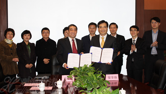 吴德星校长(左)与安宰焕校长(右)签署学术交流协议书 本站讯 3
